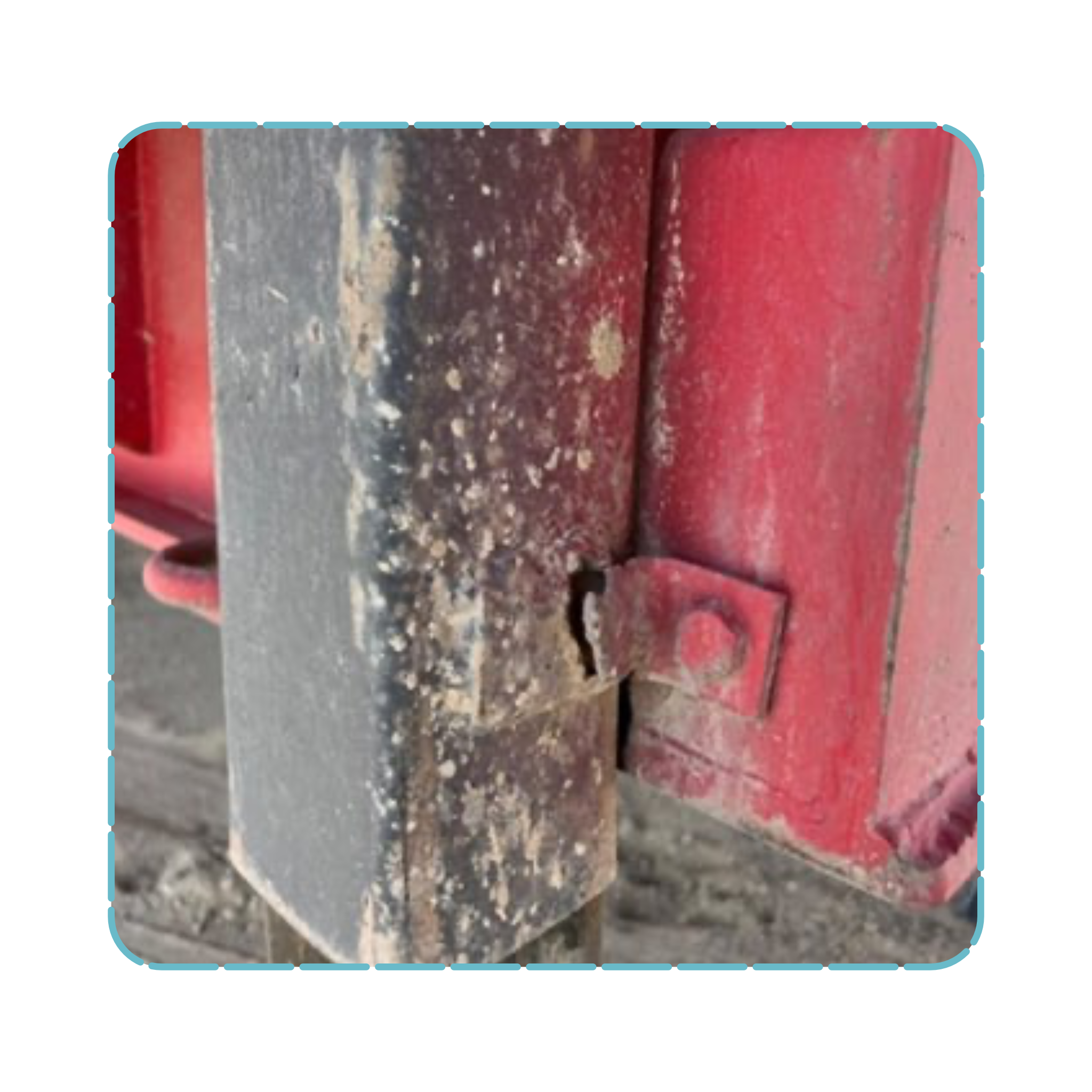 خلال الفحص، لوحظ أن القاعدة الداعمة للدعامة (Bracket) غير مثبتة في مكانها الصحيح، وأن فتحات البراغي متضررة ومتمددة كما هو ظاهر في الصورة. ما هو الإجراء الصحيح تجاه هذه الحالة؟