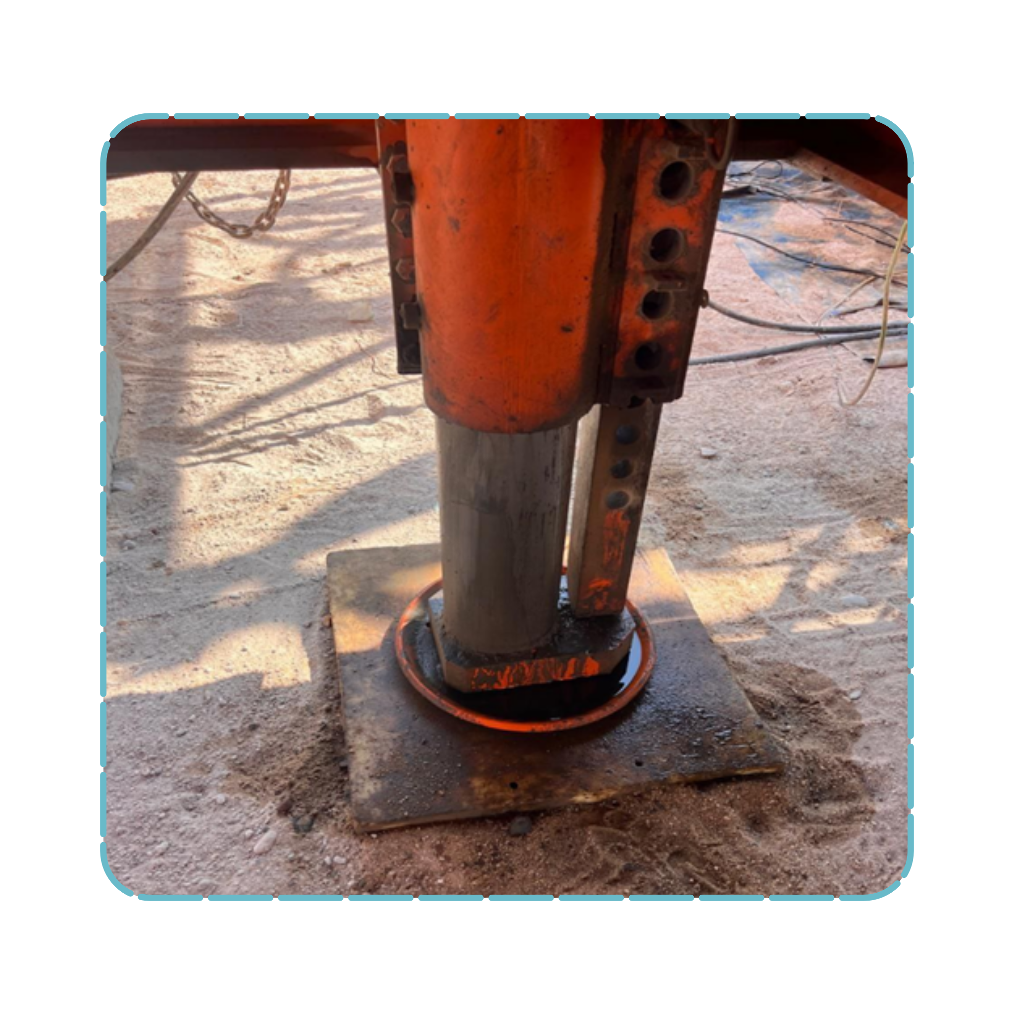 ثناء الفحص قبل الرفع، لاحظت وجود تسريب زيت هيدروليكي عند قاعدة دعامة الرافعة (Outrigger) كما هو واضح في الصورة. ما هو التقييم الصحيح لهذه الحالة؟