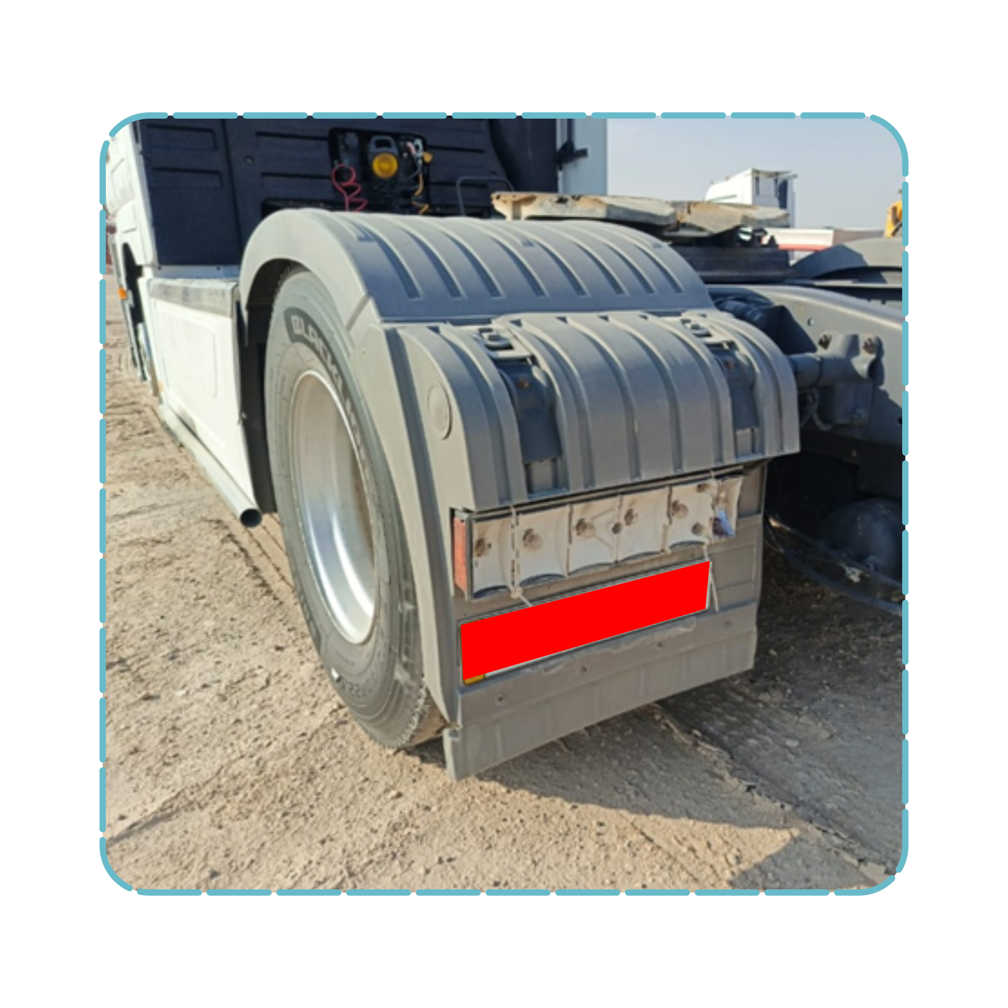 أثناء الفحص قبل التشغيل، لوحظ أن مجموعة الأضوية الخلفية (Tail Lights/Brake Lights) غير موجودة ومغطاة بقطعة معدنية كما ظاهر بالصورة. ما هو تقييم السلامة الصحيح لهذه الحالة؟