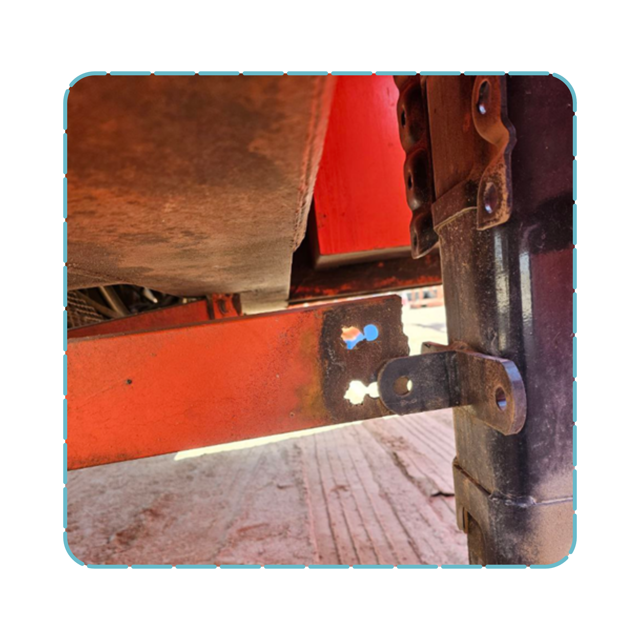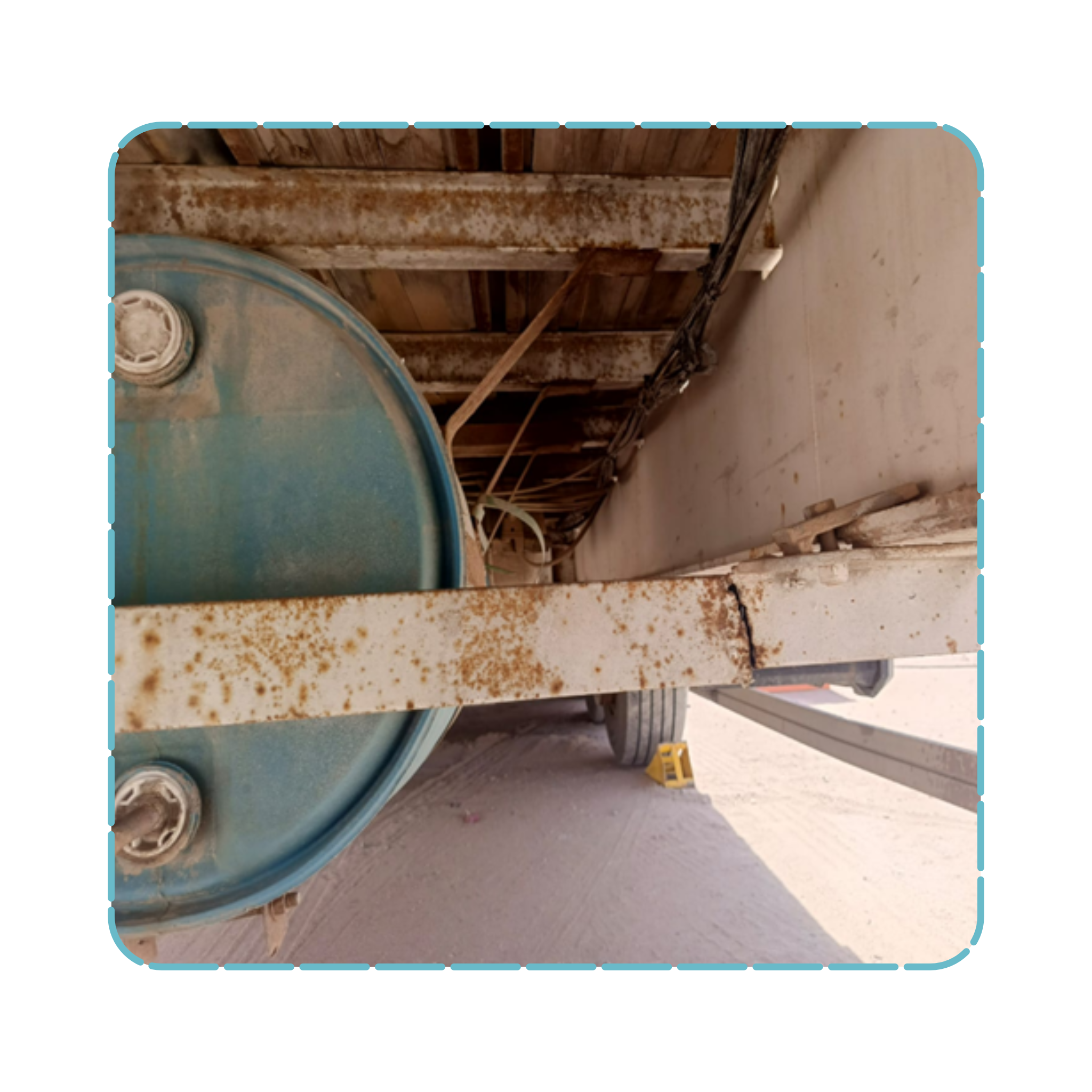 أثناء الفحص قبل التشغيل، لاحظت وجود فتحـات وتآكل شديد في أرضية التريلة كما في الصورة. ما هو الخطر الأساسي الناتج عن هذه الحالة؟